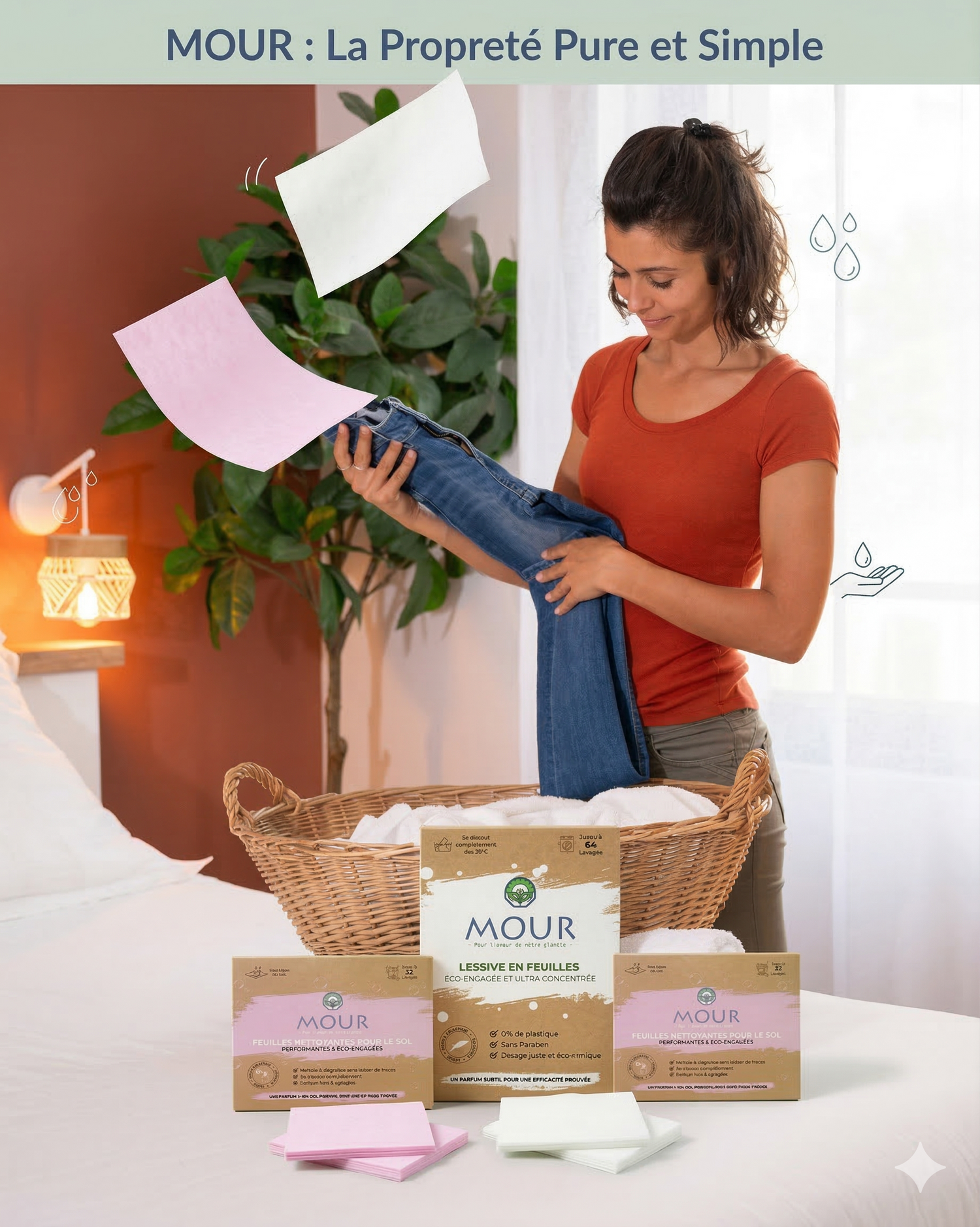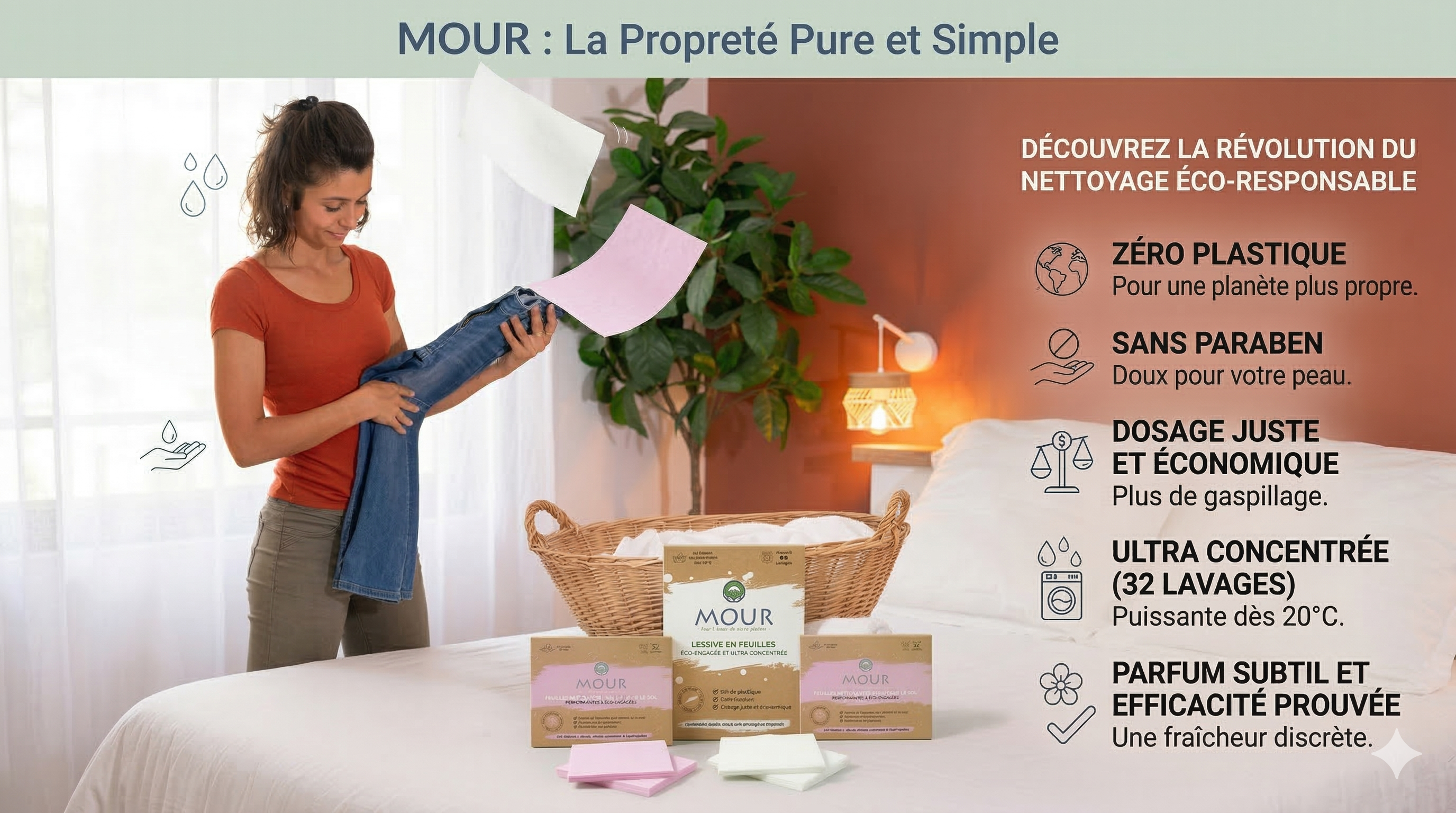 On a décidé d’en finir avec les bidons de lessive remplis d’eau, en plastique et pleins d’ingrédients douteux. Mourgreen, c’est une lessive en feuille ultra-fine, sans plastique, sans compromis. Elle lave parfaitement, sent bon, respecte votre peau, vos vêtements… et la planète !